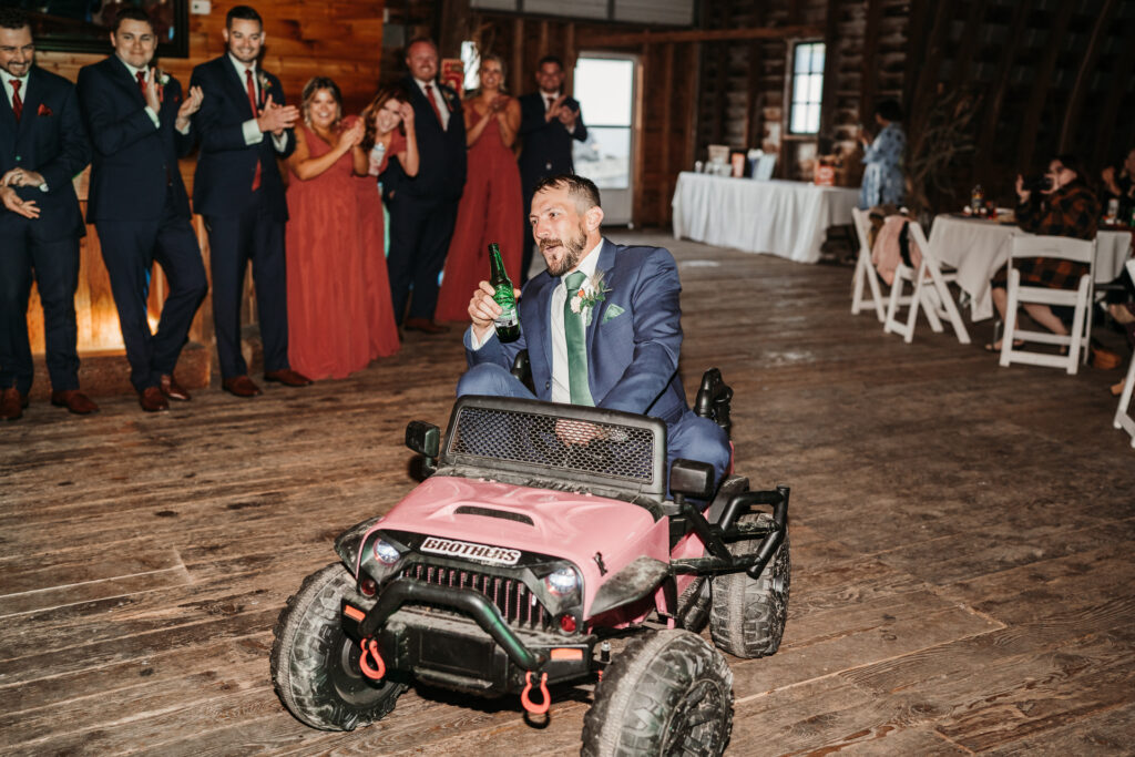 The reception began with unforgettable introductions, including power wheels cars, instantly setting the tone for a fun and energetic night. Guests were treated to a donut wall, which added a fun and personal touch to the reception and was a huge hit.